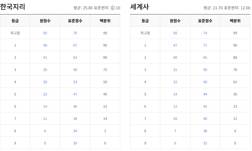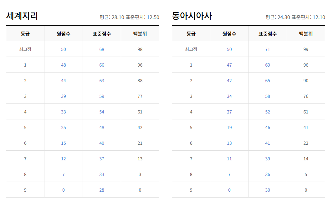 | 4교시 | 한국사,탐구(사회,과학,직업) | 14:50~16:37(107분) |